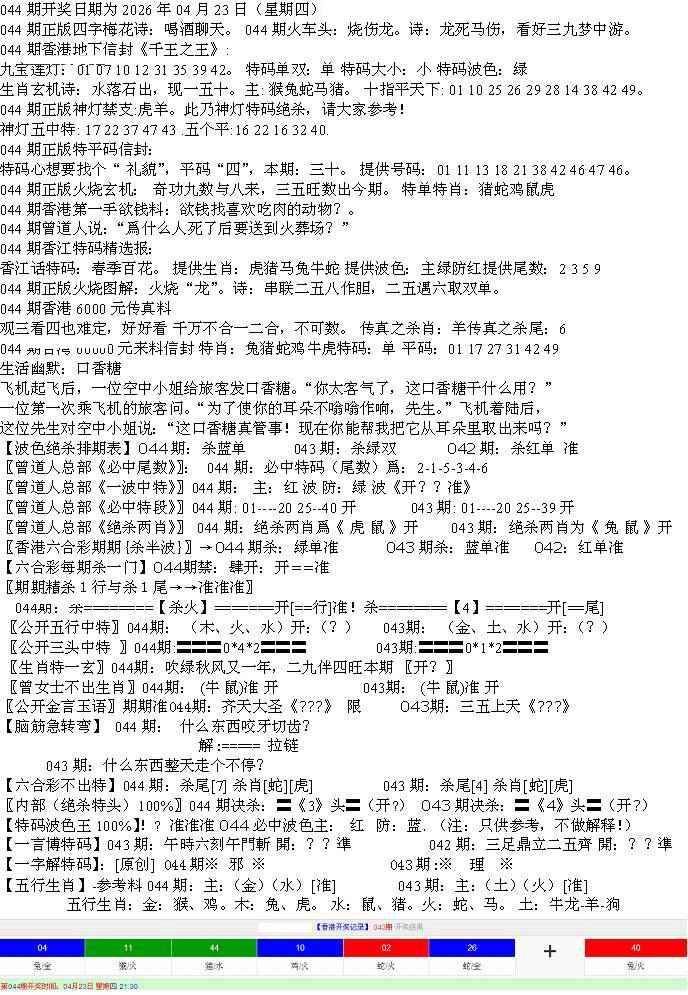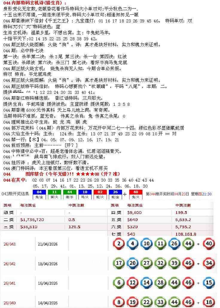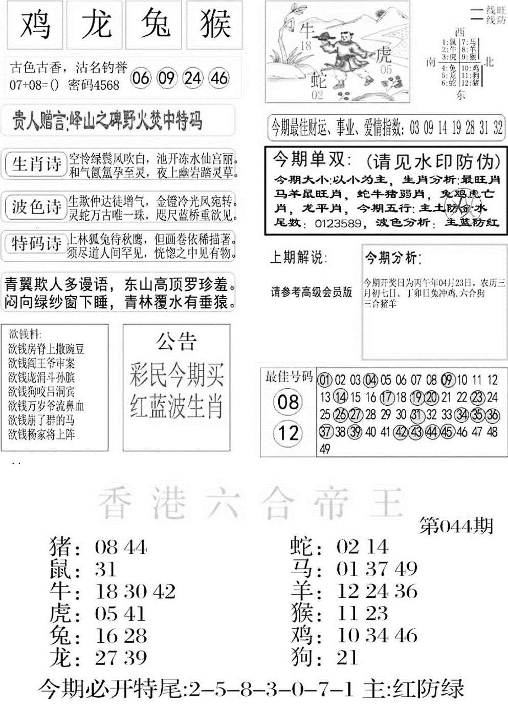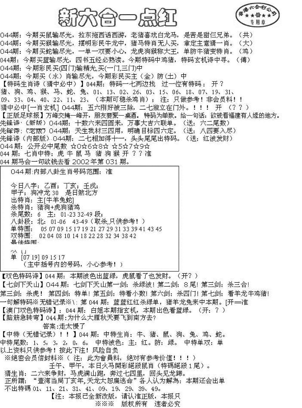九龙内幕--开奖报