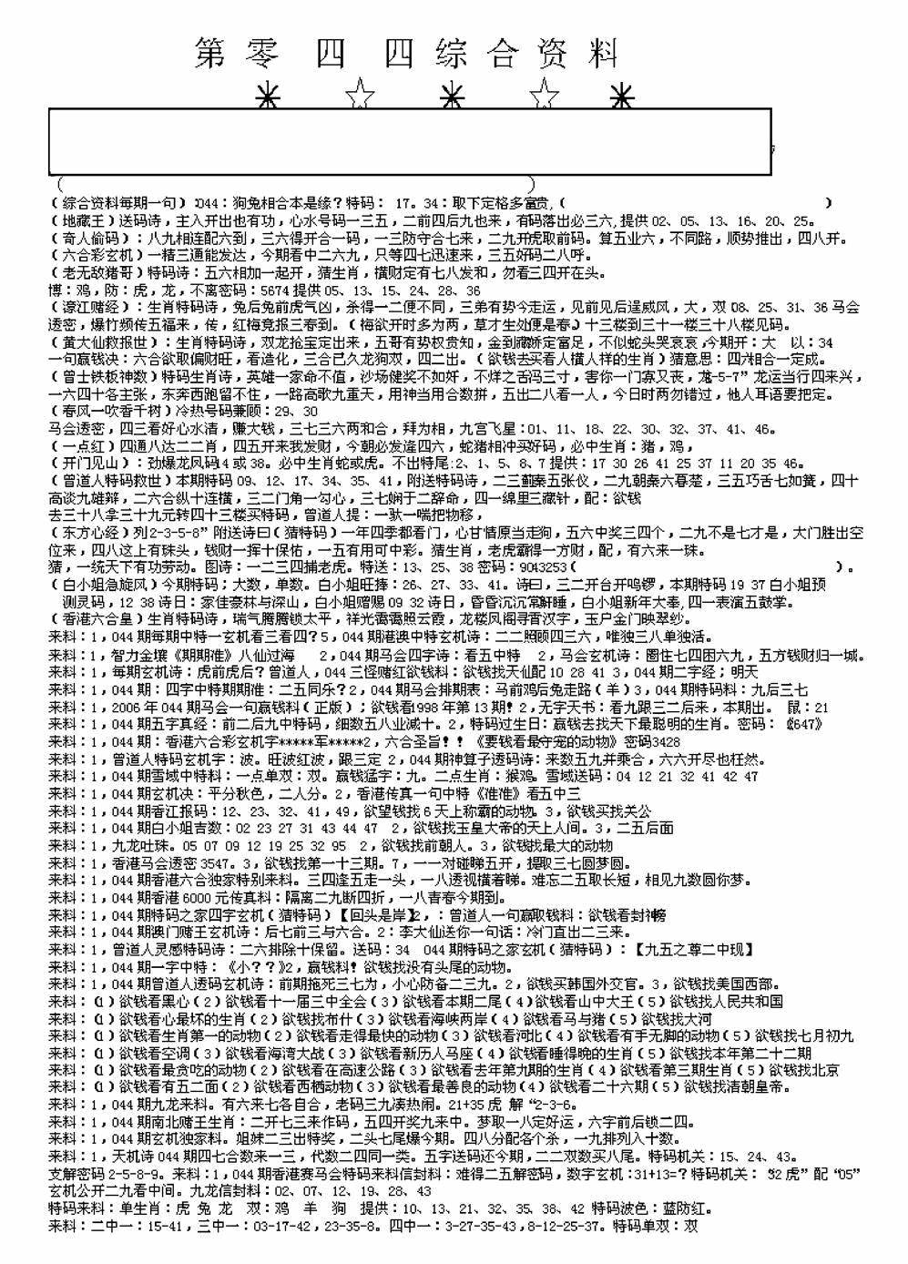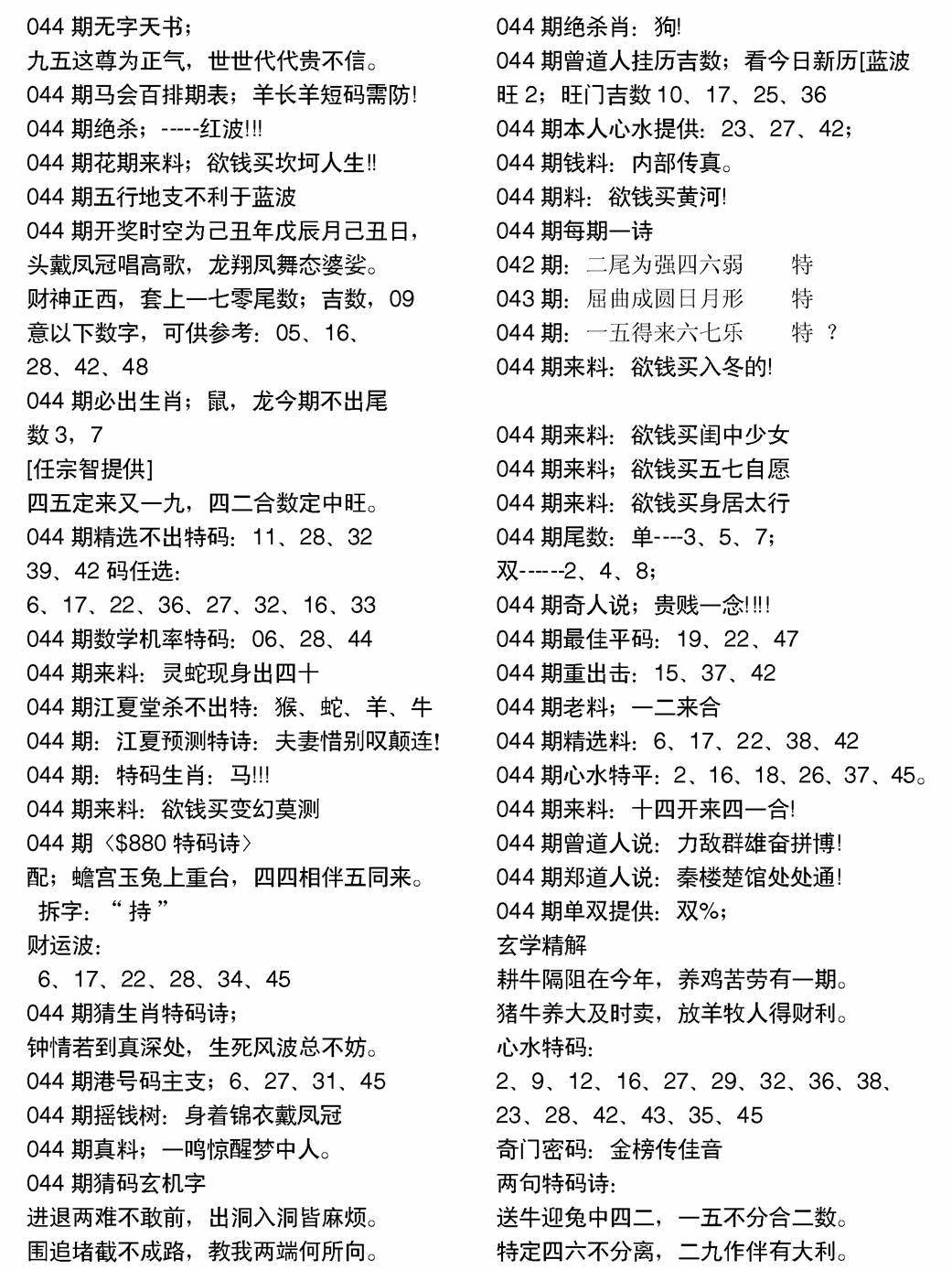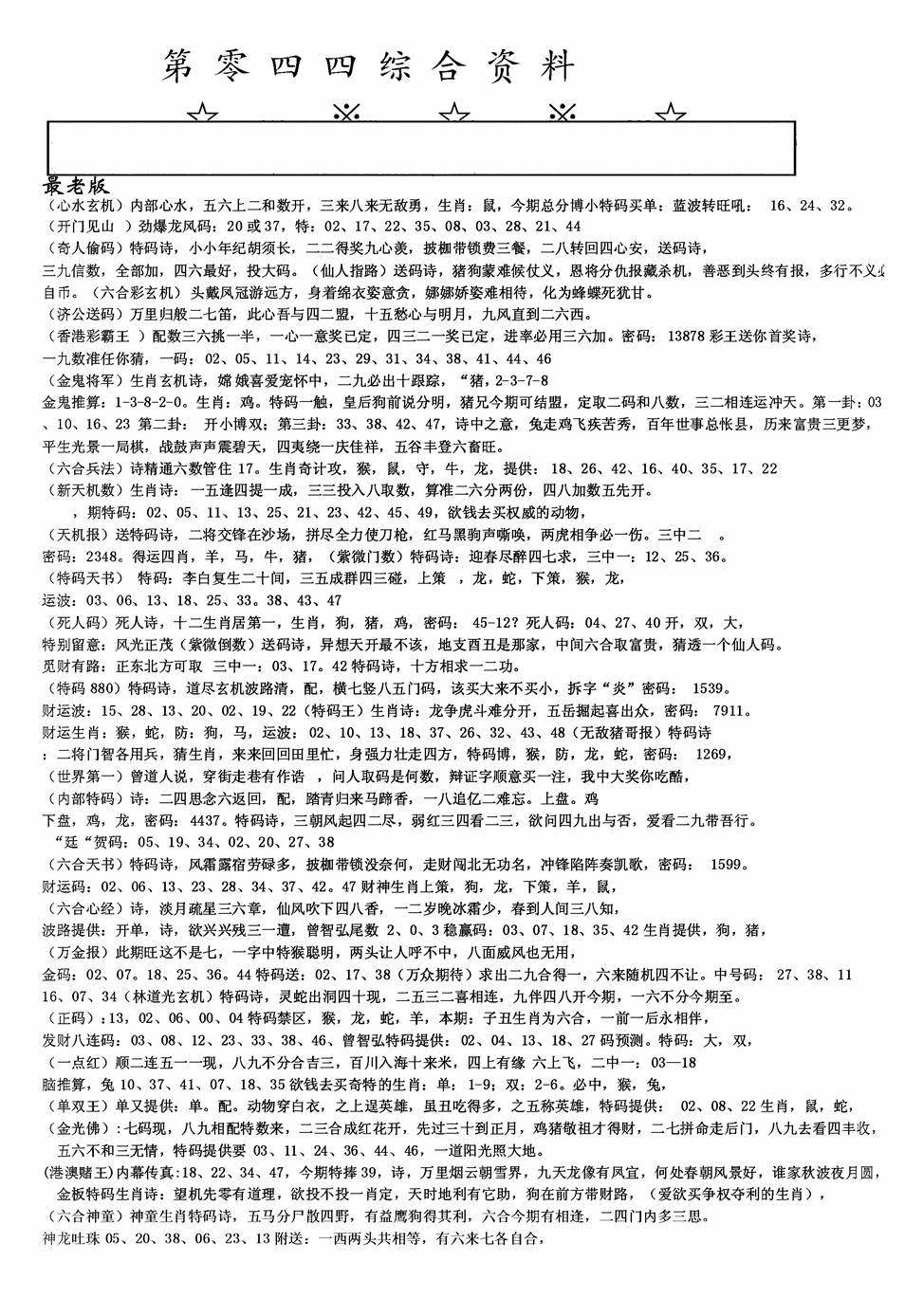 九龙内幕--开奖报