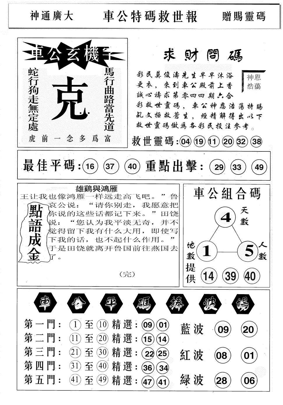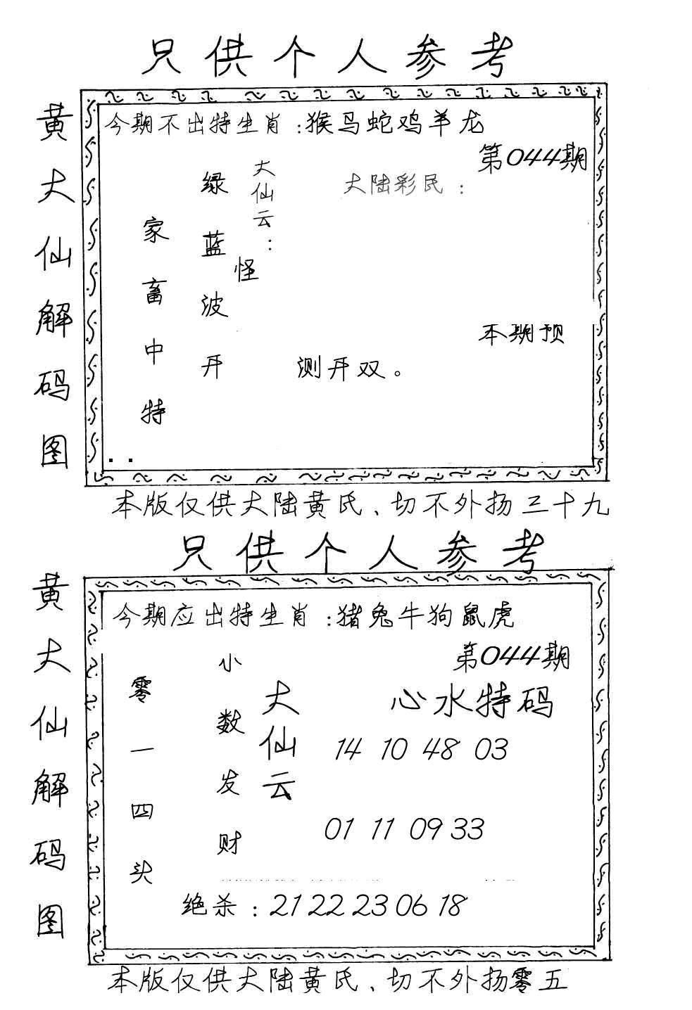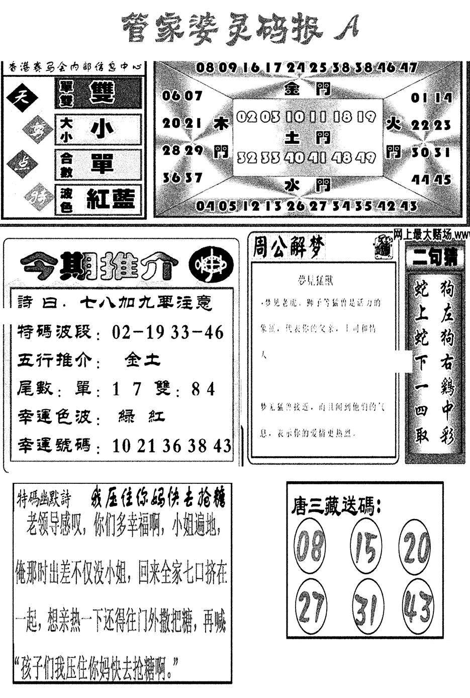 另版黄大仙灵码A